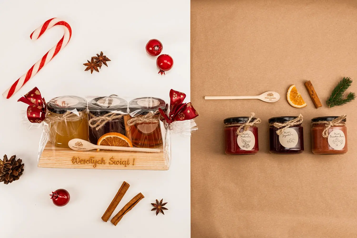 Postaw na zestaw prezentowy z prawdziwymi miodami i produktami z ula. To słodycz i zdrowie najlepszych naturalnych miodów z Podkarpacia pięknie zapakowane na drewnianych podstawach z grawerem oraz świątecznym akcentem.